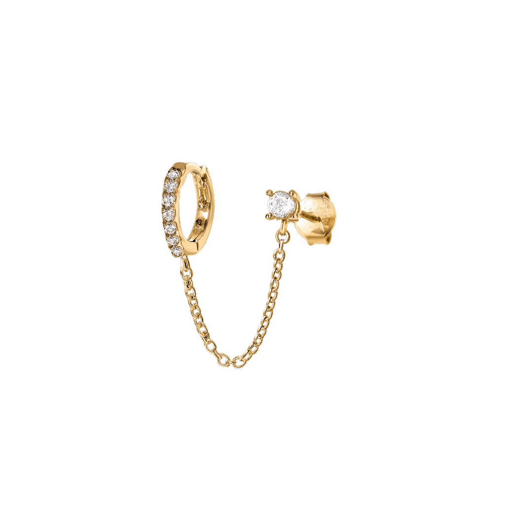 Elevate your ear stack with these 14K gold huggie piercing earrings featuring sparkling cubic zirconia and chain detail.
