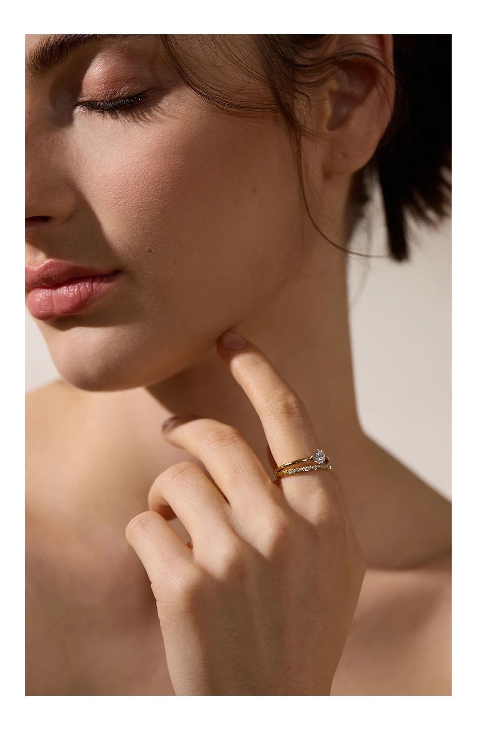 Expertly crafted from premium stainless steel with luxurious PVD real gold plating that ensures exceptional durability and long-lasting brilliance. The high-quality cubic zirconia stones provide diamond-like sparkle with superior clarity, including a 6MM center stone and smaller pave-set accent stones. The corrosion-resistant, waterproof construction guarantees reliable performance, while the nickel-free, lead-free, and cadmium-free composition ensures hypoallergenic properties for comfortable daily wear.