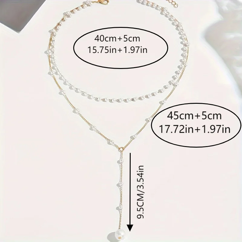 Available in gold-tone finish with white imitation pearls. The dual-length design offers versatile styling options, while the adjustable extension chains allow for customized fit and layering possibilities. The tassel pendant serves as a focal point that complements both casual and formal ensembles.